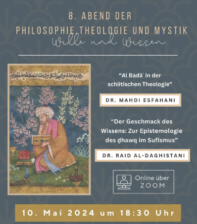 Am 10. Mai 2024 fand der 8. Abend der Philosophie, Theologie und Mystik unter dem Thema „Wille und Wissen“ statt. Veranstaltet wurde dieser Online-Vortragsabend vom Al-Mustafa Institut Berlin in Kooperation mit der Stiftung für islamische Studien e. V. (SIS).